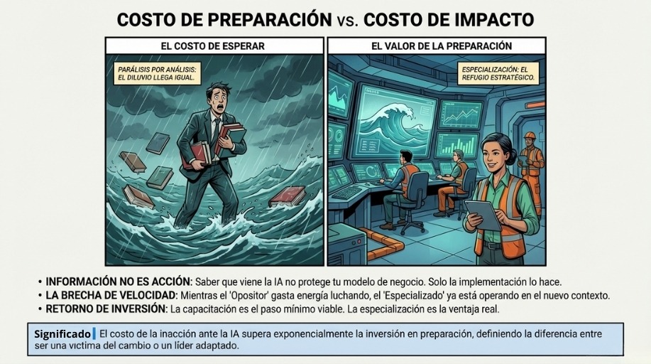Para pasar de la ZONA DE PELIGRO a la ZONA DE SUPERVIVIENCIA tienes que capacitarte, entender de qué se trata la Inteligencia Artificial, qué beneficios tiene y cómo puedes usarla en tu favor y en favor de tu empresa.