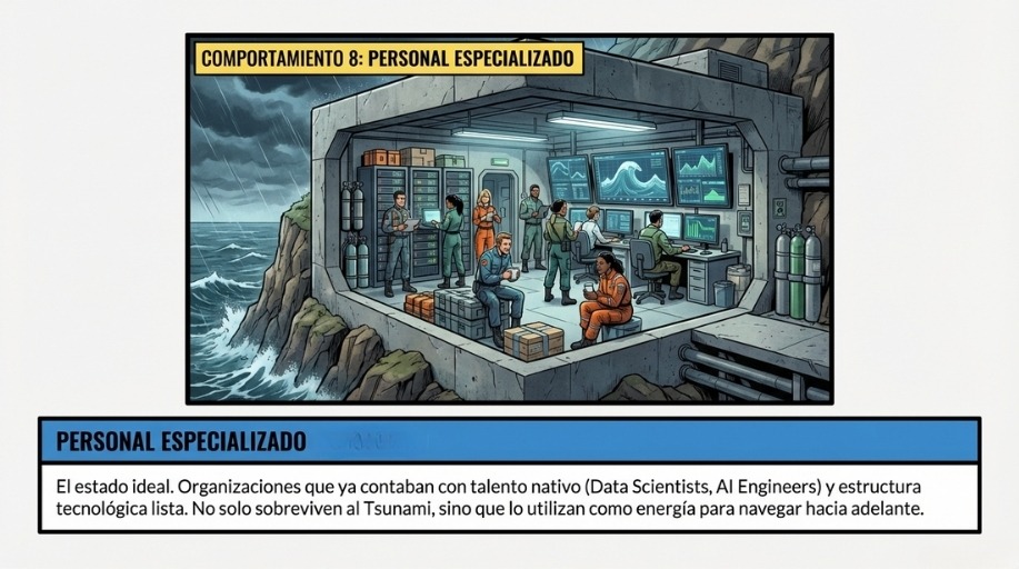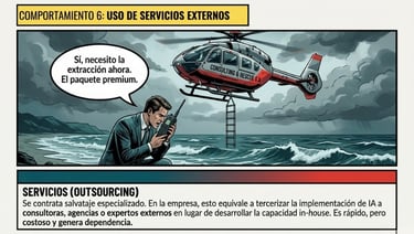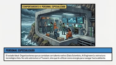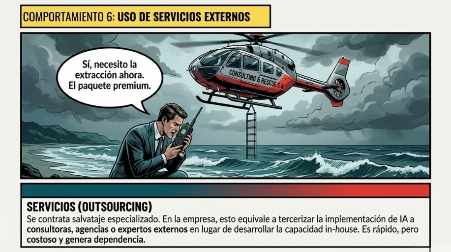 Para pasar de la ZONA DE SUPERVIVIENCIA a la ZONA DE NAVEGACIÓN tienes que usar la IA de manera eficaz. Lo puedes hacer contratando servicios externos que usan IA, pagando aplicaciones que usan IA o bien contratando Personal Especializado en IA que trabaja en tu empresa.